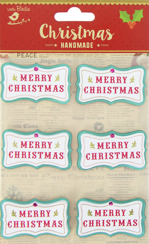 Little Birdie Christmas Tags 6/Pkg-Merry Christmas