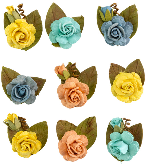Little Birdie Handmade Mini Rose Flowers 9/Pkg-Sun And Sky