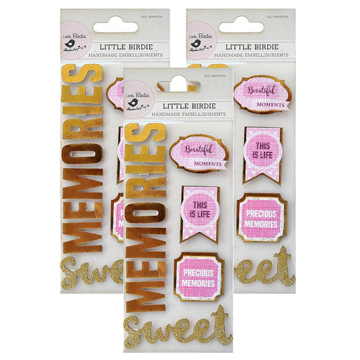 Pack of 3 - Foil and Glitter Sticker Embellishment 12/Pkg-Sweet Memories