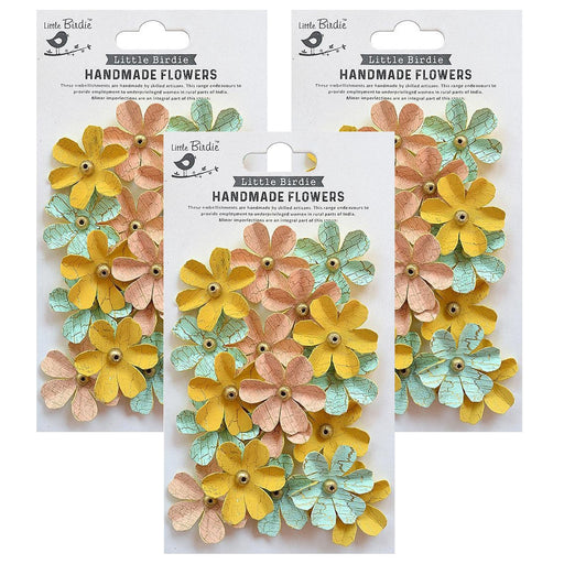 Pack of 3 - These handcrafted flowers are perfect embellishments for adding a classic floral touch to projects. Use them as it is or use inks, pai...