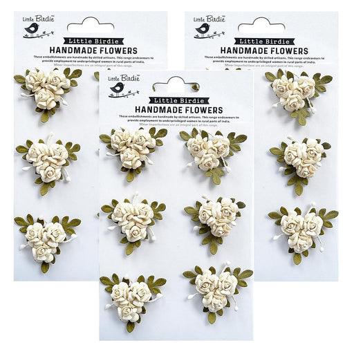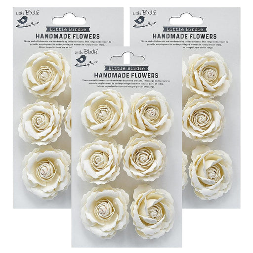 Pack of 3 - These handcrafted flowers are perfect embellishments for adding a classic floral touch to projects. Use them as is or use inks, paints...