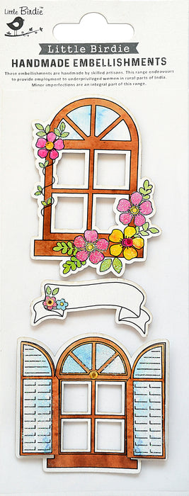 Add architectural interest with these Window Themed Little Birdie sticker embellishments. Just peel and stick to adhere these pretty windows to your next handmade card, home decor project, or scrapbook page.