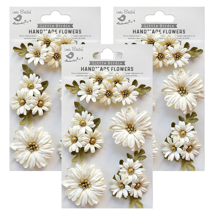Pack of 3 - These handcrafted flowers are perfect embellishments for adding a classic floral touch to projects. Use them as it is or use inks, paints and glitter to give a personalized touch. Imported.