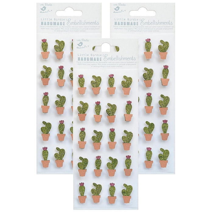 Pack of 3 - Glitter Embellishment 20/Pkg-Mini Cactus