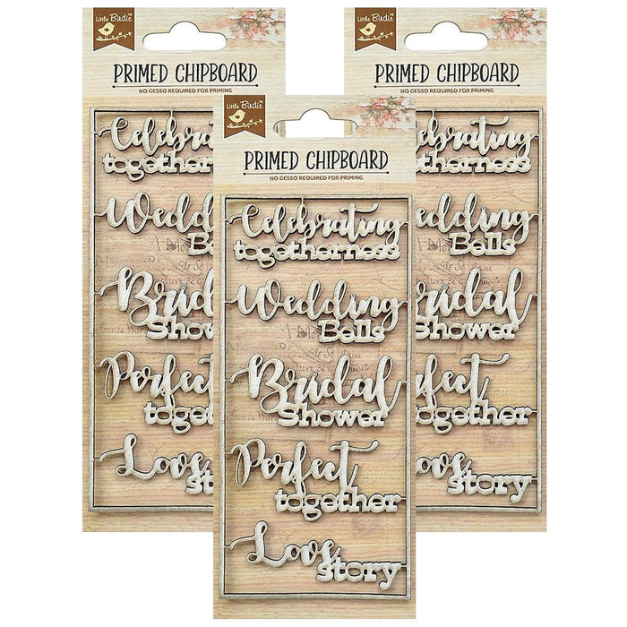 Pack of 3 - Laser Cut Primed Chipboard 1/Pkg-Wedding Bells