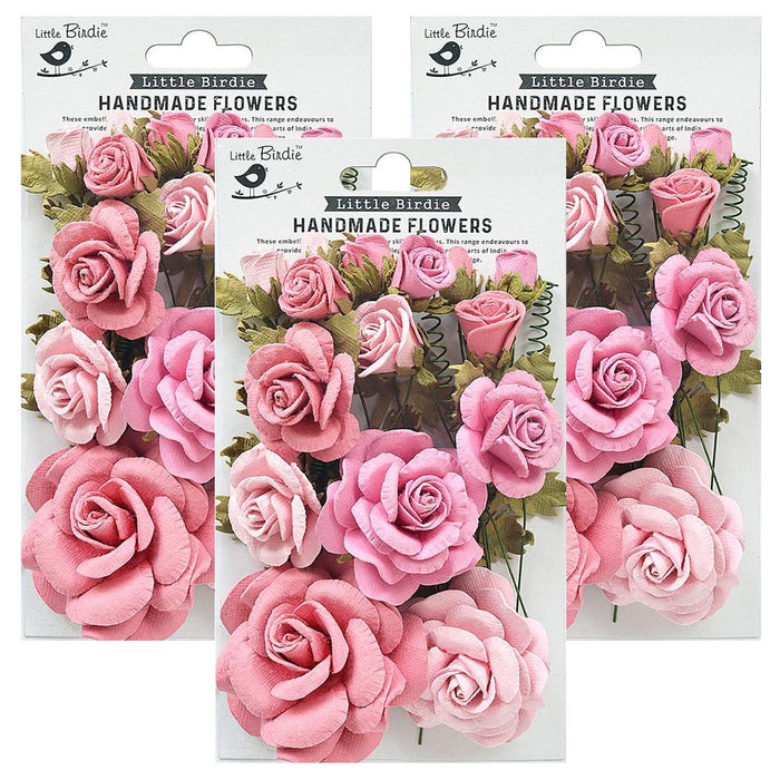 Pack of 3 - These handcrafted flowers are perfect embellishments for adding a classic floral touch to projects. Use them as it is or customize them with inks, paints and glitter to match your creation. Imported.