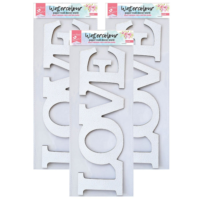Pack of 3 - This versatile watercolor paper word is ideal for customizing with colors of your choice. Paint it with watercolor paints, watercolor pencils, ink washes and more to match your project or decor plan. The high quality paper has great absorbency and avoids warping. Imported. unspecified